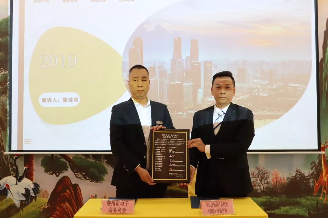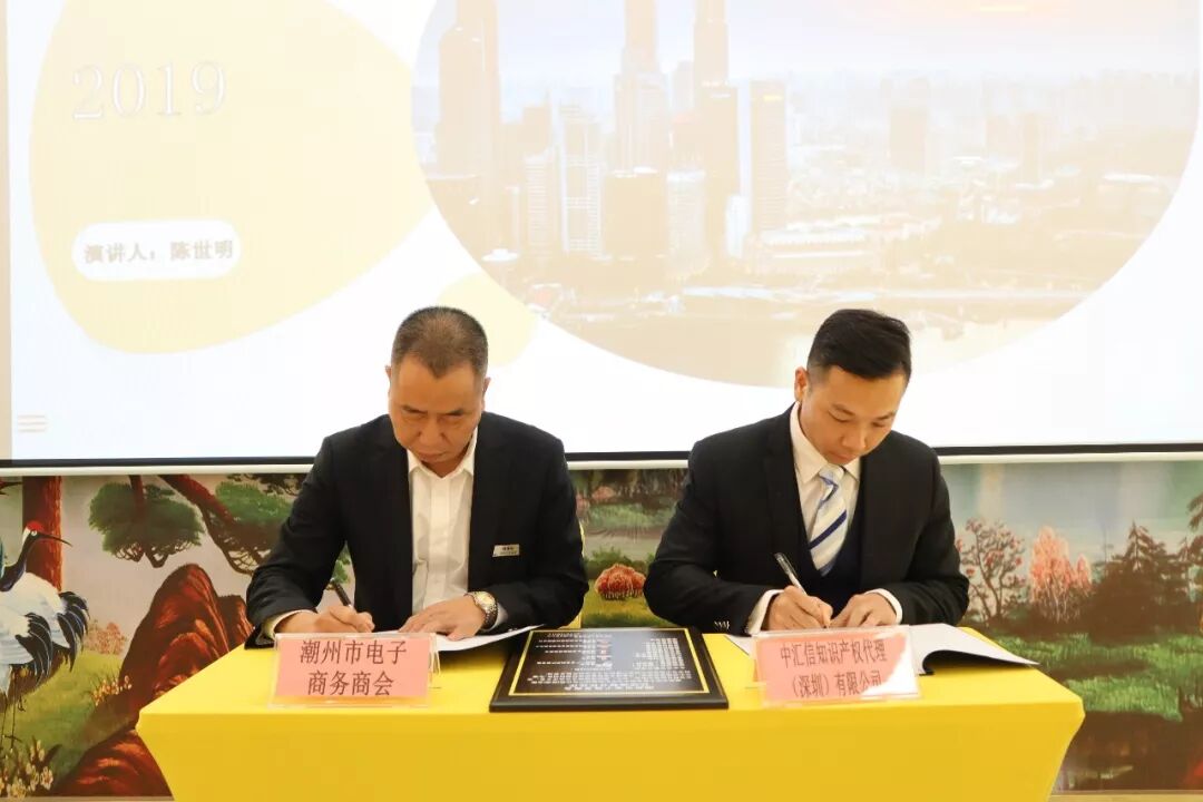潮州市电子商务商会与中汇信知识产权代理(深圳)有限公司签约法律战略合作伙伴和授牌仪式。